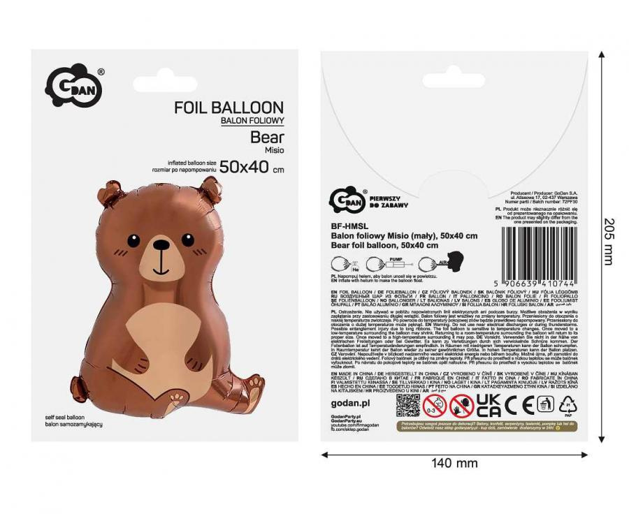 Uroczy balon foliowy w kształcie misia to doskonała dekoracja na każdą dziecięcą uroczystość! Wykonany z trwałej folii, balon zachwyca ciepłym, brązowym kolorem i sympatycznym wyrazem twarzy, który rozczuli każdego malucha (i nie tylko!).