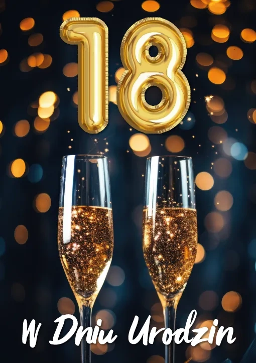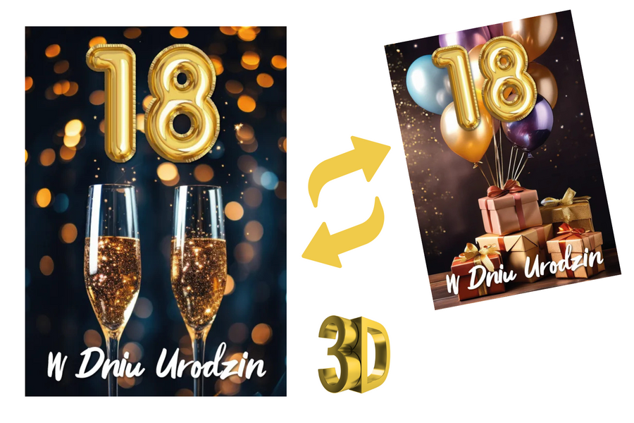 - Kartka z życzeniami na 18- ste urodziny z trójwymiarowym efektem dwóch zmieniających się grafik.