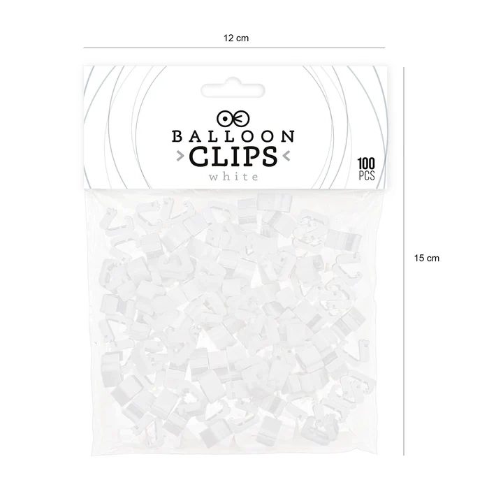 Klipsy do balonów – białe zamknięcie, 100 szt.