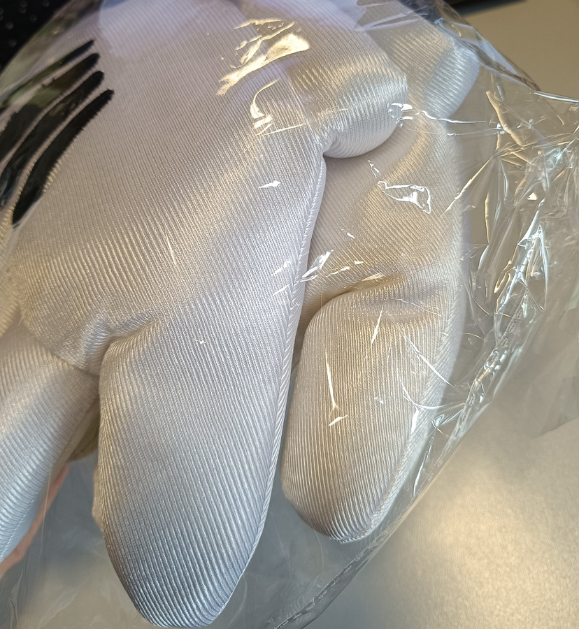 Produkt outletowy: różnica kolorów pomiędzy rękawiczkami ( jedna jest biała, druga bardziej żółta.)