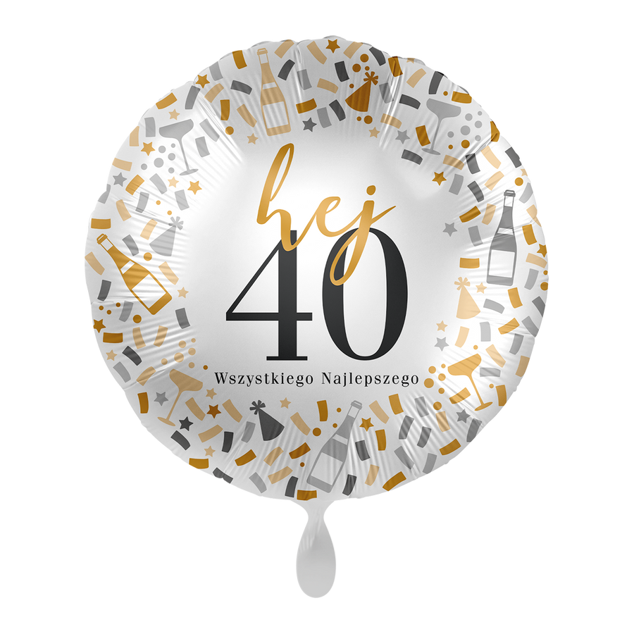 Balon foliowy okrągły Wszystkiego najlepszego Hej 40! 18 cali