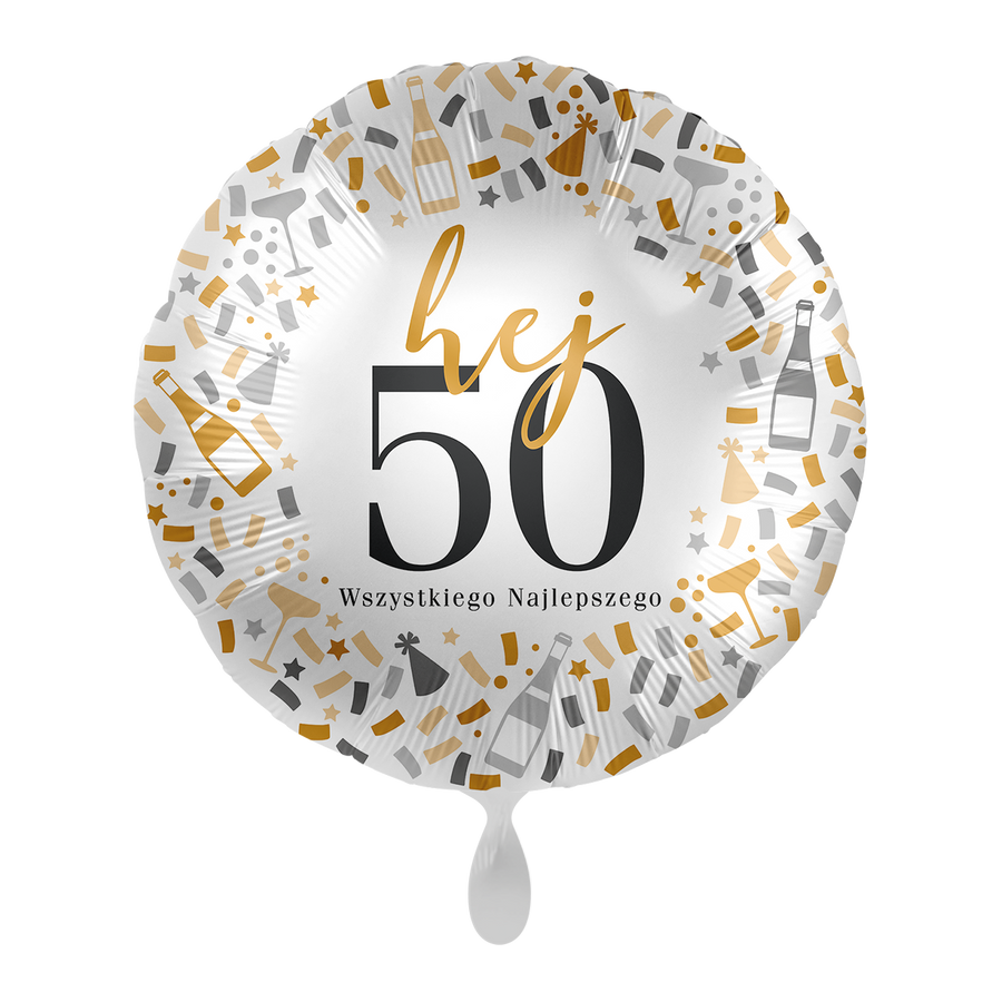 Balon foliowy okrągły Wszystkiego najlepszego Hej 50! 18 cali