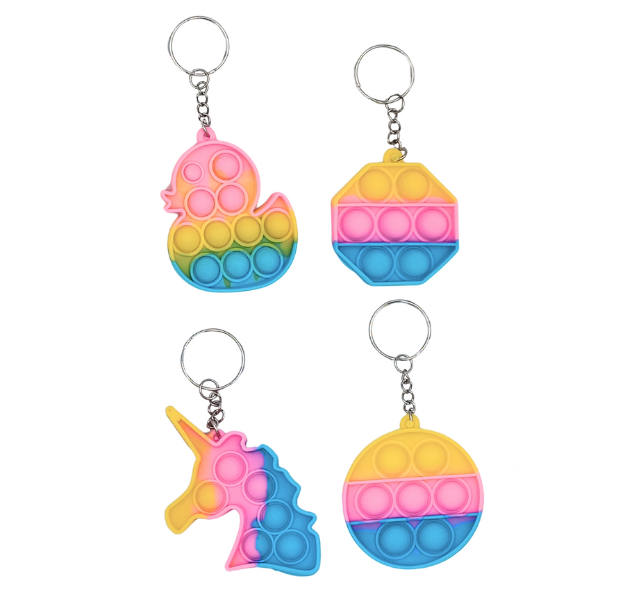 Brelok silikonowy Pop It mix wzorów to mały gadżet wykonany z silikonu, łączący funkcję breloka z popularną zabawką sensoryczną typu Pop It (bubble fidget).