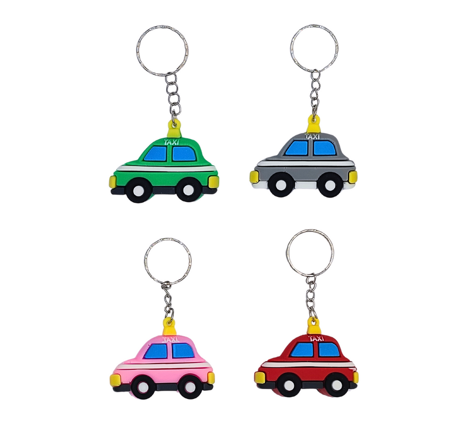 • Silikonowy brelok w kształcie kolorowego samochodu.