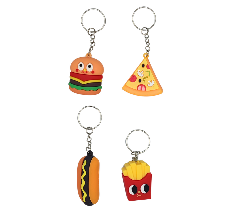 • Silikonowy brelok w kształcie jedzenia: hot-dog, frytki, hamburger i pizza