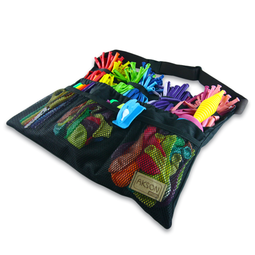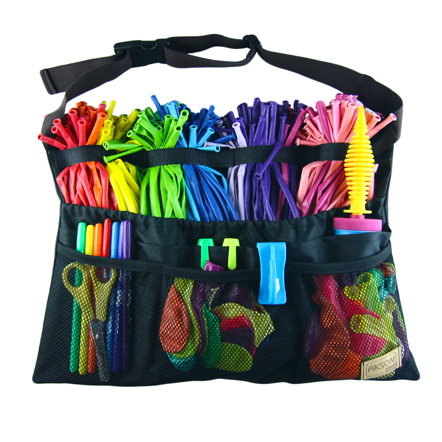 pasa na balony - specjalne rzepy ułatwią przechowywanie długich balonów, dzięki nim można posegregować balony do modelowania i mieć do nich wygodny dostęp, kieszonki wykończone gumką dają możliwość przechowywania dodatkowych akcesoriów i okrągłych balonów, głębsze kieszenie idealnie sprawdzą się np. na pompkę do balonów, dodatkowo pas wypełniony balonami bardzo dobrze się prezentuje i przyciąga uwagę