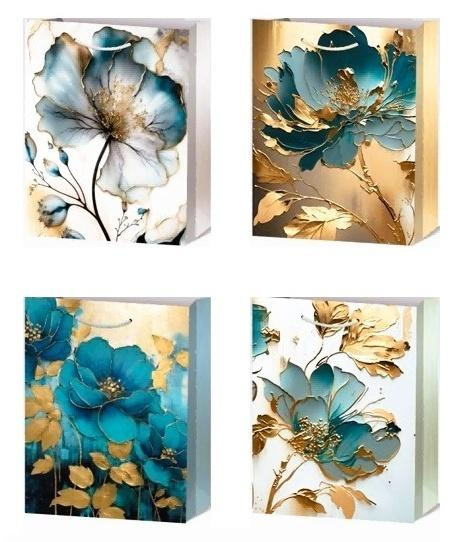 Torebka prezentowa Kwiaty niebiesko złote 32x26x10 cm mix wzorów
