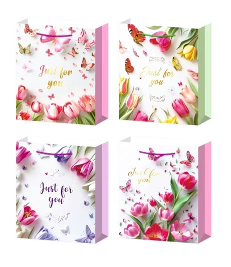 Torebka prezentowa kwiaty Tulipany Just For You 24x18x8,5 cm mix wzorów