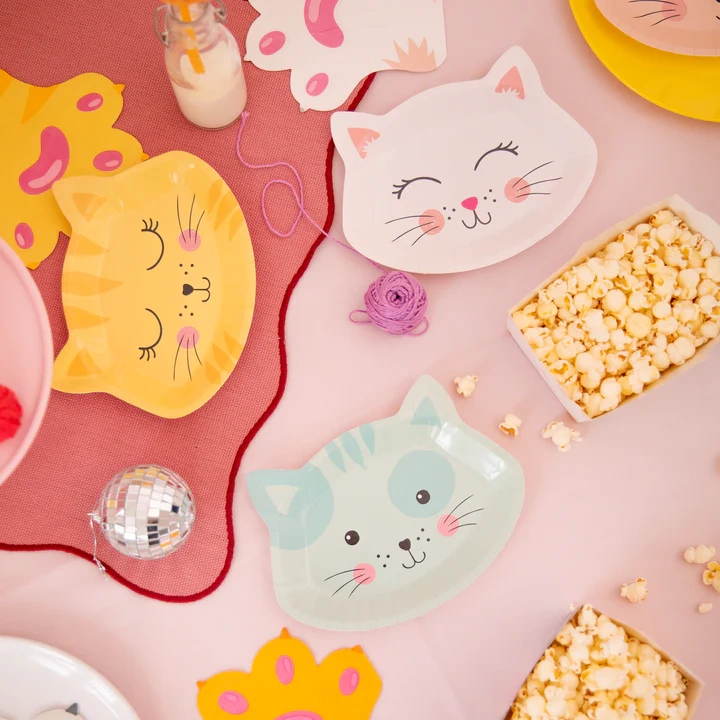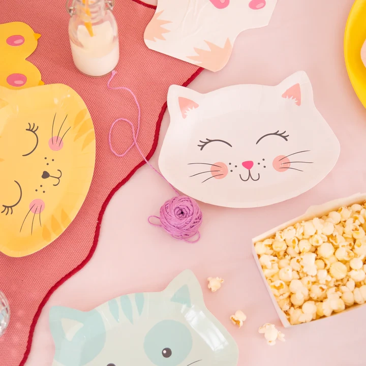 Papierowe talerzyki w kształcie kocich główek to uroczy i praktyczny element dekoracyjny idealny na dziecięce urodziny, przyjęcia tematyczne, baby shower lub spotkania dla miłośników kotów. Ich oryginalny kształt i wesoły design sprawiają, że każde nakrycie stołu zyskuje wyjątkowy charakter.