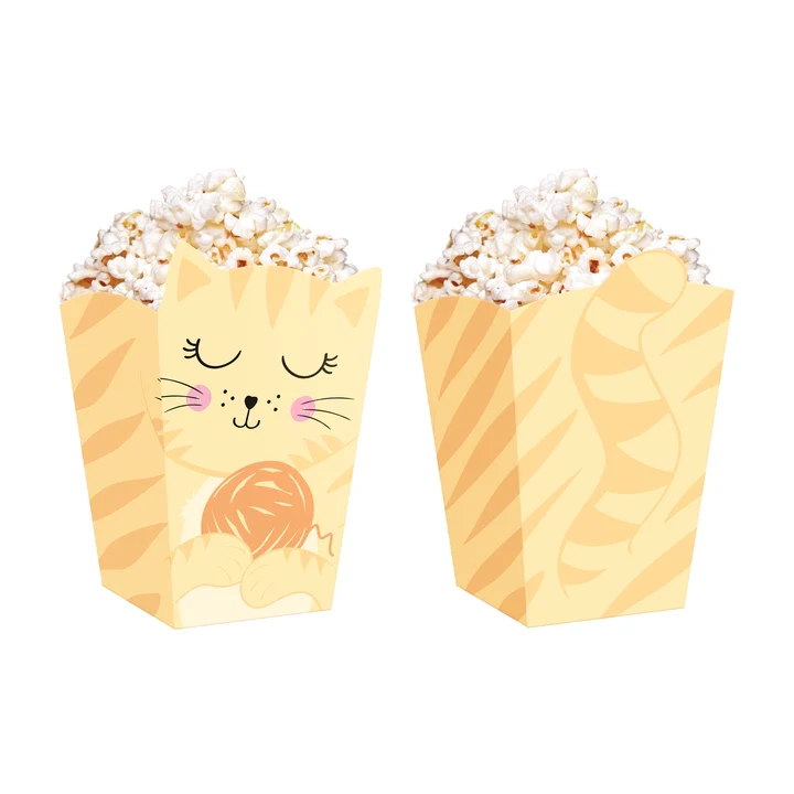 Dekoracyjne pudełka na popcorn z motywem uroczych kotków to idealny dodatek na dziecięce przyjęcia, urodziny, imprezy tematyczne lub wieczory filmowe. Stylowy design i praktyczny format sprawiają, że świetnie nadają się nie tylko na popcorn, ale także na inne przekąski, słodycze czy drobne upominki.