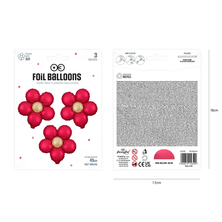 Balon foliowy Kwiat czerwony matowy do girland 45 cm 3 szt.