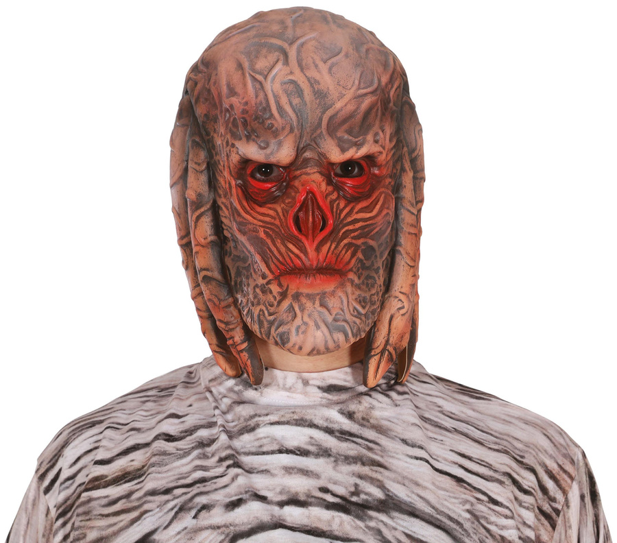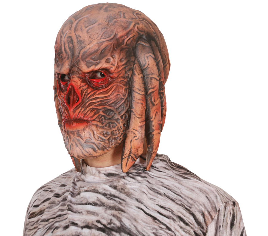 Charakterystyczne cechy to obła, pozaziemska twarz, głębokie bruzdy oraz miękkie, elastyczne macki, które dodają efektu ruchu i naturalności. Idealna na Halloween, cosplay, konwenty tematyczne lub filmowe przebieranki.