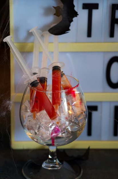Dodaj swojej halloweenowej imprezie nutę makabry i zabawy dzięki zestawowi dekoracyjnych strzykawek! Każda strzykawka ma długość 12 cm i pojemność 20 ml, co czyni je idealnym gadżetem do podawania drinków, sosów, sztucznej krwi lub jako element dekoracji w klimacie grozy.