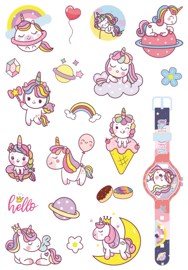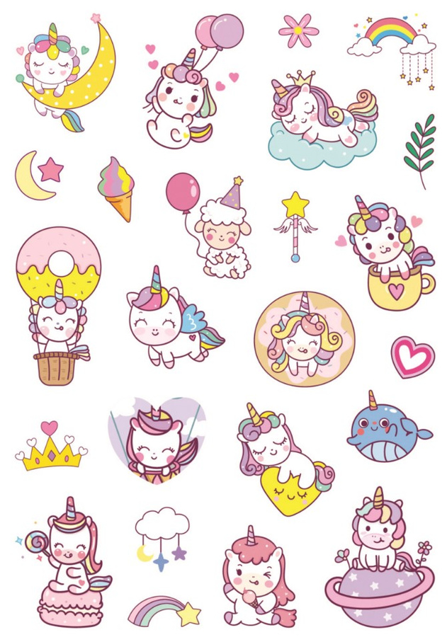 • Motyw: urocze jednorożce, chmurki, tęcze i inne bajkowe elementy
