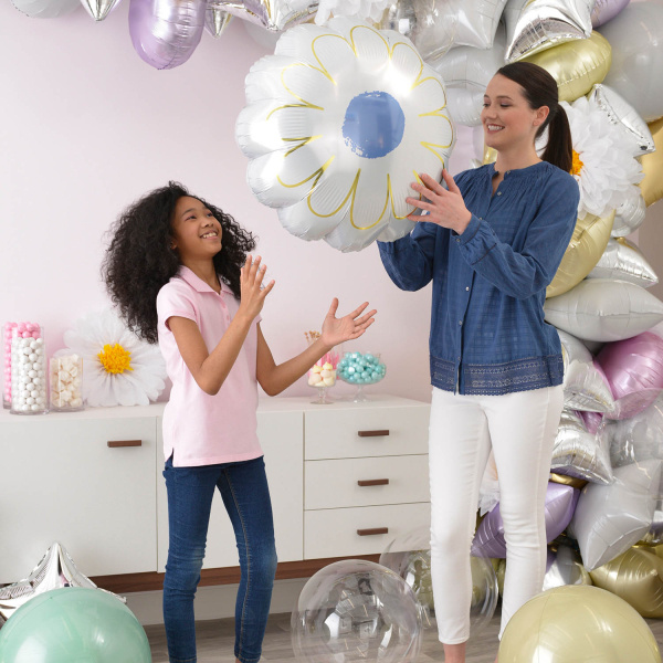 Dodaj odrobinę radości i wiosennego uroku do swojej dekoracji z naszym balonem foliowym w kształcie stokrotki! Uroczy biały kwiatek z niebieskim środkiem, wykonany z trwałej folii, idealnie sprawdzi się jako element wystroju na urodziny, baby shower, piknik, garden party czy sesję zdjęciową.