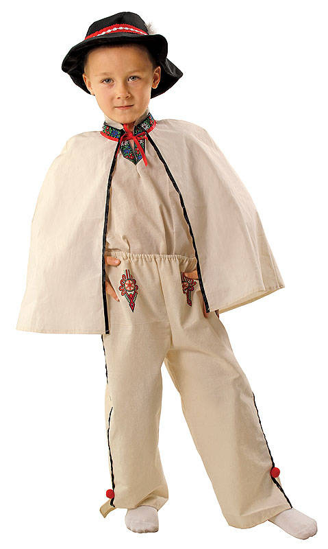 - Strój dziecięcy GÓRAL LUX doskonały jako charakteryzacja w przedstawieniach szkolnych i teatralnych. Idealne uzupełnienie garderoby do jasełek i strojów ludowych. Kostium dla wygodny i elastyczny. Zestaw zawiera: bluza, spodnie, peleryna, kapelusz.