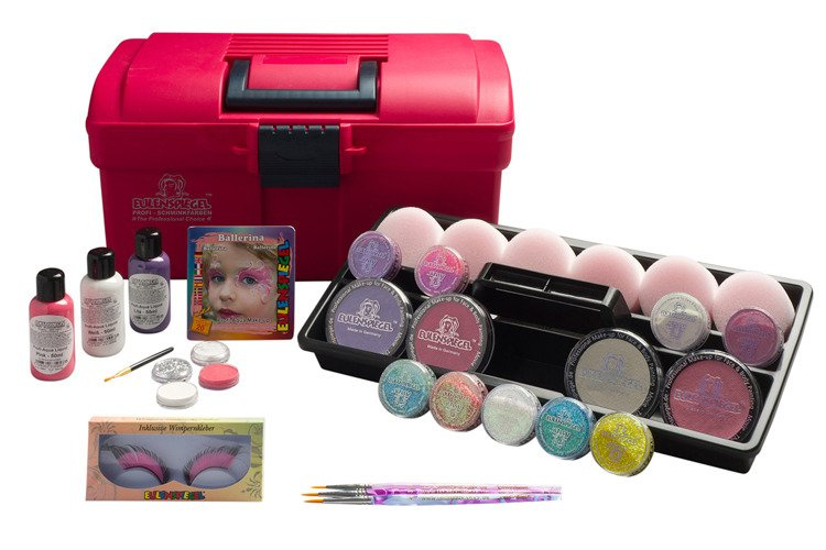 Kufer wyposażony jest w jedne z najbardziej popularnych produktów dla dziewczynek z szerokiej gamy akcesoriów Eulenspiegel, doskonałych do tworzenia fantazyjnych makijaży.