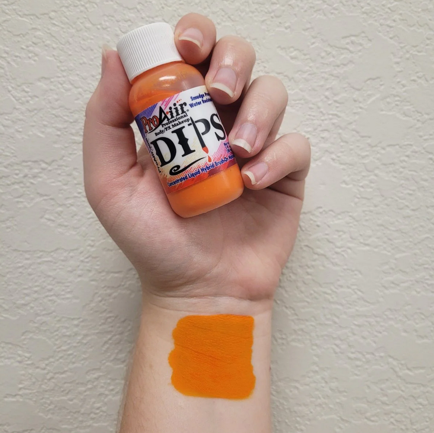 ProAiir DIPS to wysoce skoncentrowana, wodoodporna farba do twarzy i ciała, na bazie alkoholu, opracowana specjalnie do nakładania pędzlem, w celu uzyskania szczegółowych i precyzyjnych linii.