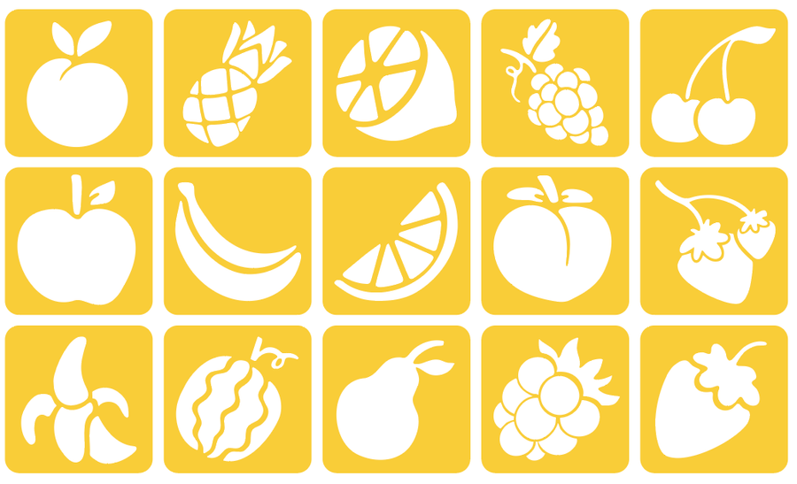 Szablony do tatuaży brokatowych ZESTAW 15 szt. mix Owoce