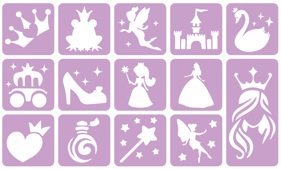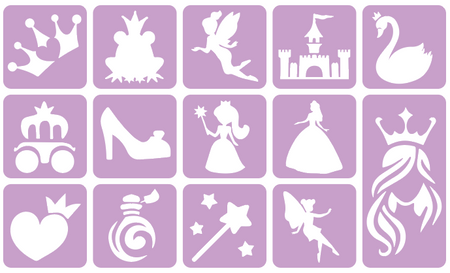 Szablony do tatuaży brokatowych ZESTAW 14 szt. mix Księżniczki - Wróżki