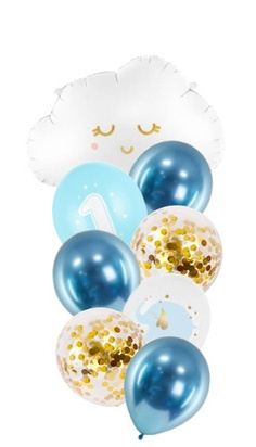 Zestaw balonów bukiet balonowy na roczek dla chłopca ( 8 szt.) Z HELEM