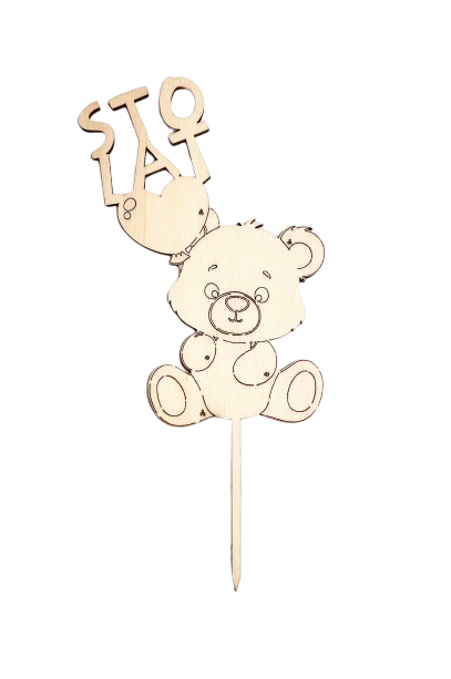 - Topper na tort drewniany z napisem Sto Lat i uroczym misiem z serduszkiem