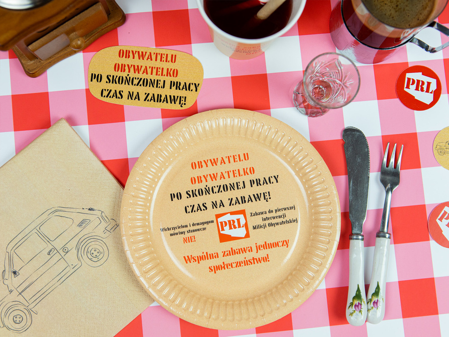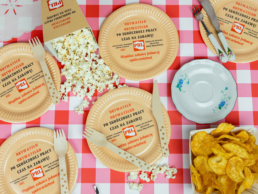 - Praktyczne, papierowe talerzyki z motywem w stylu PRL