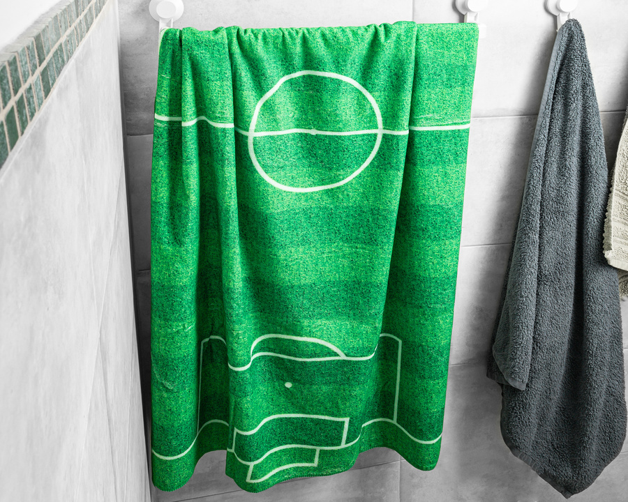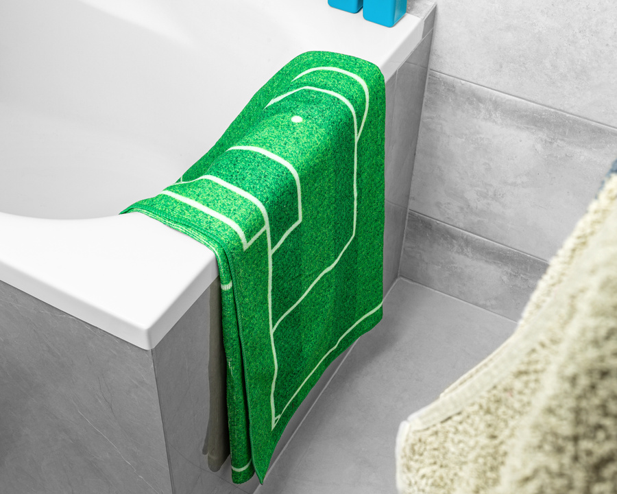 Ten wyjątkowy ręcznik ze wzorem boiska piłkarskiego to idealny gadżet dla każdego miłośnika piłki nożnej – od najmłodszych kibiców po zapalonych zawodników. Niezależnie od tego, czy używasz go w szatni, na siłowni, na plaży czy po kąpieli – zawsze przypomni Ci o Twojej pasji. Soczysta zieleń nawiązująca do murawy boiska, doda Ci energii do działania.