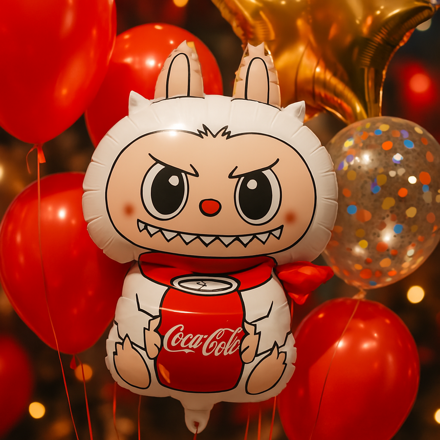 Balon foliowy przedstawiający Labubu – ulubionego stworka z kolekcji figurek artystycznych. Postać zachwyca kreskówkowym urokiem: szerokie, psotne usta odsłaniające ząbki, wyraziste oczy i duże, szpiczaste uszy z akcentami. Balon foliowy w kształcie postaci LABUBU trzymającej puszkę napoju to idealny dodatek do każdej imprezy – urodzin, przyjęć tematycznych czy sesji zdjęciowych.
