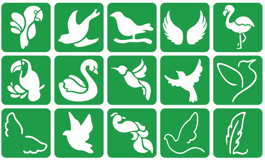 Szablony do tatuaży brokatowych ZESTAW 15 szt. mix Ptaki