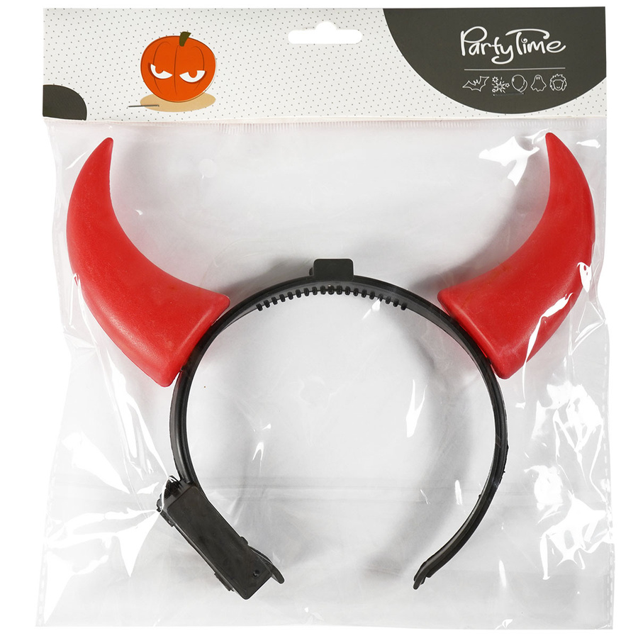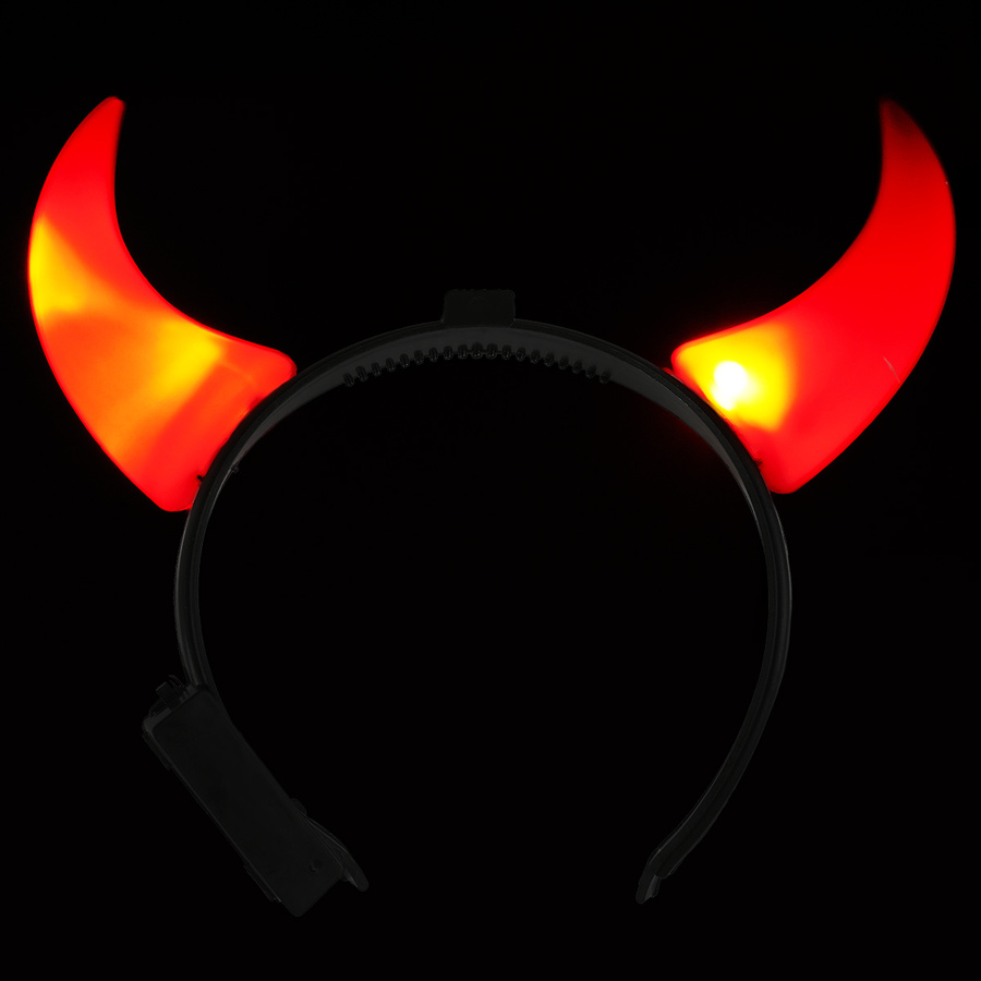 Czerwone rogi diabła umieszczone na wygodnej, regulowanej opasce. Wykonane z tworzywa sztucznego, dzięki zasilaniu na baterie - świecą w ciemności.