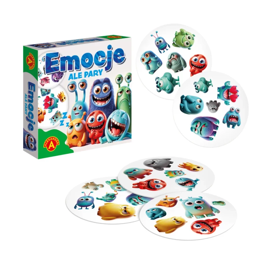 „Ale Pary – Emocje” to wyjątkowa gra, która poprzez zabawę, może pomóc dzieciom zrozumieć, co czują i pokazać, jak radzić sobie z różnymi emocjami. Gra polega na znalezieniu wspólnego obrazka – przedstawiającego emocję – na dwóch kartach. Ale uwaga! Emocje mogą różnić się wielkością, co sprawia, że wyzwanie jest jeszcze większe. Gra toczy się w dynamicznym tempie, więc potrzebna jest koncentracja i szybka reakcja.