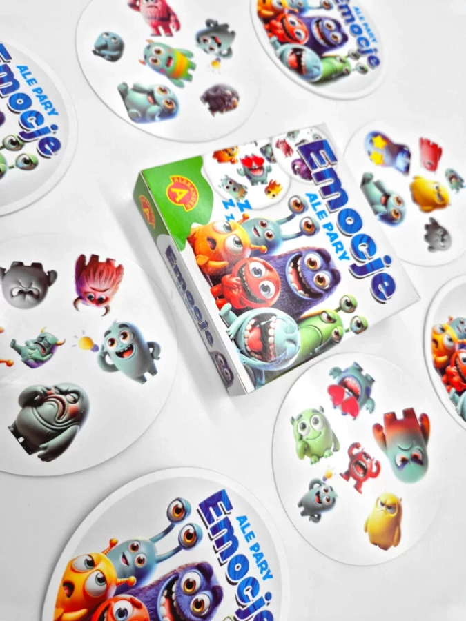 • "Ale Pary – Emocje" to wyjątkowa gra, która pomaga dzieciom zrozumieć uczucia, rozwija koncentrację i uczy szybkiego reagowania. Znajdź wspólne emocje na dwóch kartach, ale uważaj – mogą różnić się wielkością!
