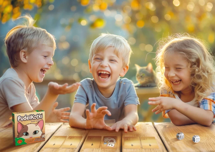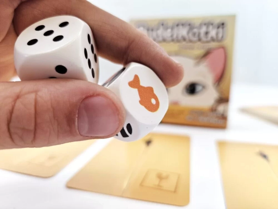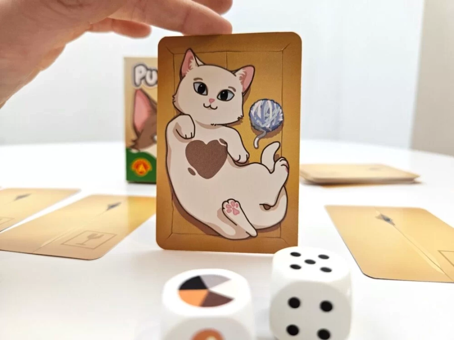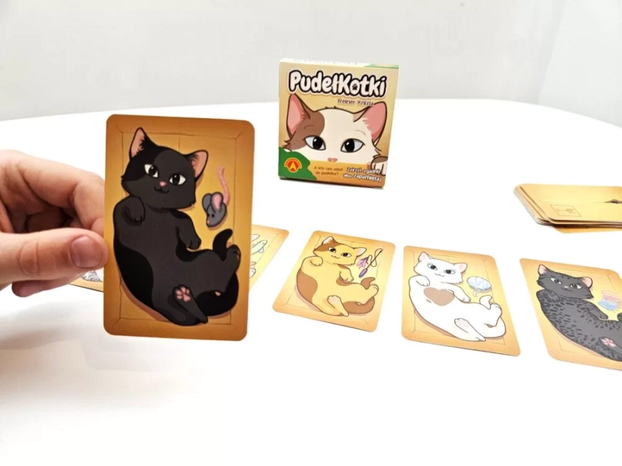 PudełKotki to lekka pamięciówka nie tylko dla miłośników kotów. Należy zapamiętać barwę i umaszczenie naszych pupilków (np. łatki, paski) oraz ich zabawkę. Na stół wykładamy karty z wizerunkiem pudełek, w których ukrywają się kotki. Każda karta to różna kombinacja trzech elementów. Rzut kośćmi wskaże, o którą kartę i o jaki atrybut chodzi. Jeśli pamiętasz (lub zgadniesz), wygrywasz.