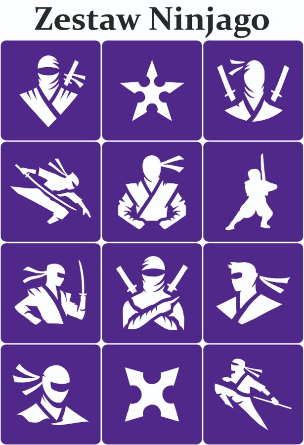 Szablony do tatuaży brokatowych Zestaw Ninjago 12 szt.
