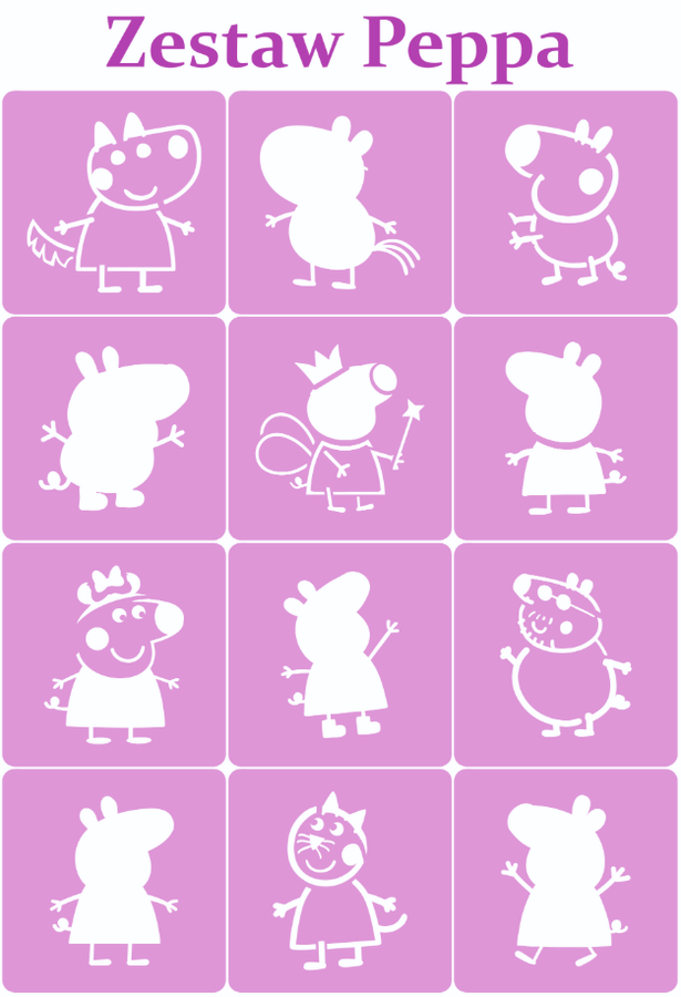 Szablony do tatuaży brokatowych Zestaw Peppa 12 szt.