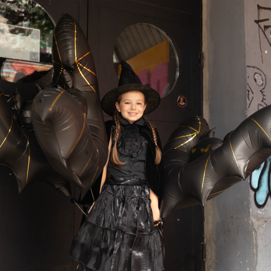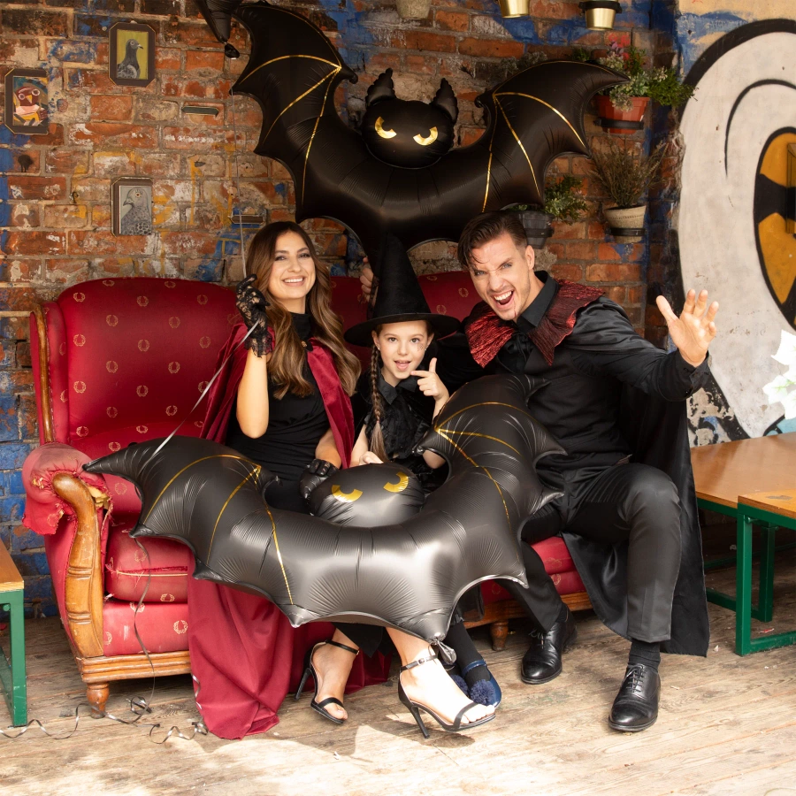 Efektowny balon foliowy w kształcie nietoperza to idealna dekoracja na Halloween, imprezę tematyczną czy bal maskowy. Wykonany z wysokiej jakości folii w eleganckiej czerni, dodatkowo ozdobiony złotymi detalami, prezentuje się wyjątkowo stylowo i przyciąga wzrok. Dzięki dużym wymiarom balon świetnie sprawdzi się jako centralny punkt aranżacji lub element fototła.