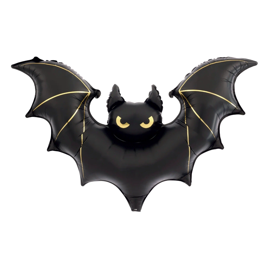 - Balon foliowy Nietoperz w kolorze czarnym ze złotym nadrukiem. Wymiary ok. 85x150 cm. Do balonu dołączona jest słomka. Cena za sztukę.