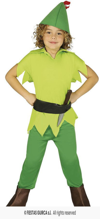 Strój Robin Hood / Piotruś Pan od Guirca w intensywnie zielonym kolorze to idealny wybór dla chłopców, którzy chcą wcielić się w odważnego bohatera lub sprytnego skrzata. Doskonały na przebierane przyjęcia, karnawał, Halloween czy zabawy tematyczne.