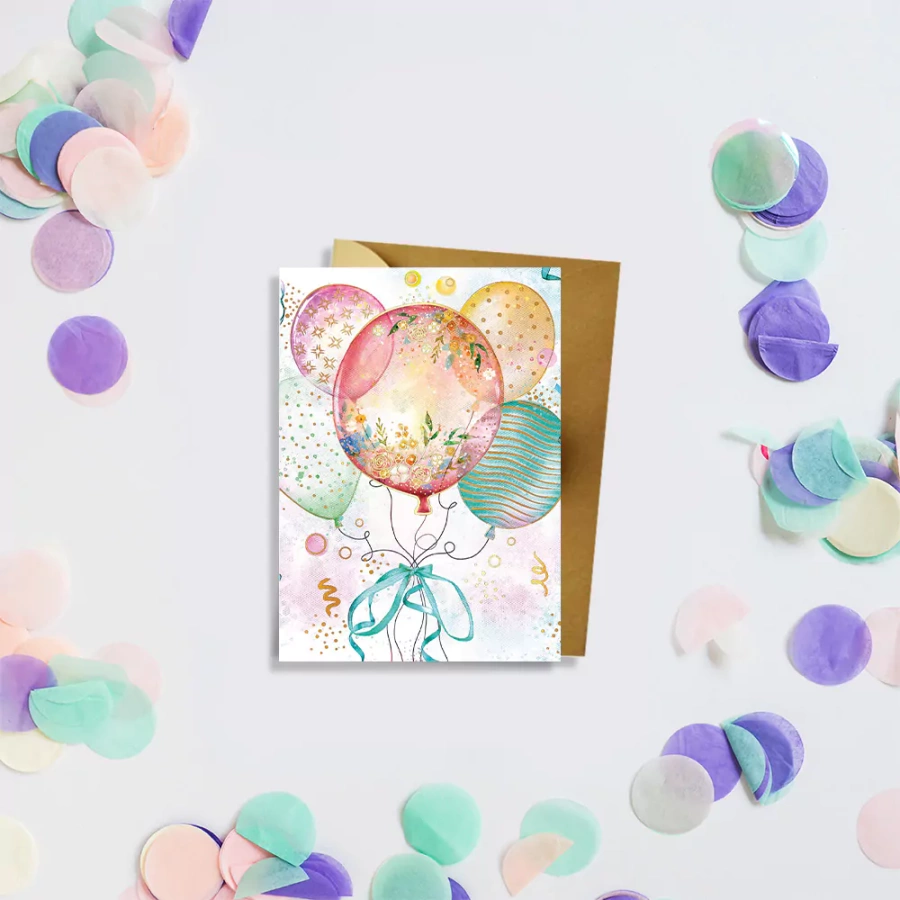 Urocza mini kartka okolicznościowa z kolorowymi balonami to doskonały sposób na przekazanie krótkich, ale wyjątkowych życzeń. Świetnie sprawdzi się jako dodatek do upominku, kwiatów czy drobnego podarunku.