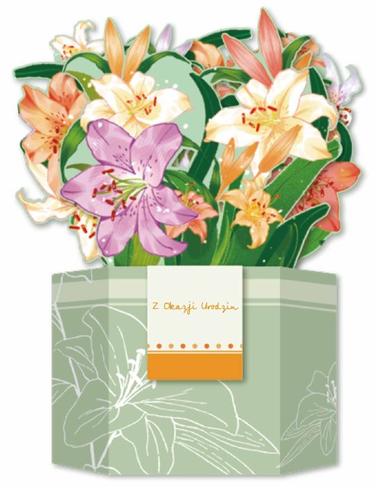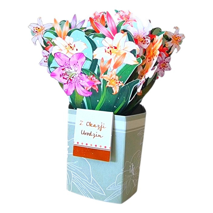 Kartka okolicznościowa 3D przestrzenna Bukiet Lilie Z Okazji Urodzin