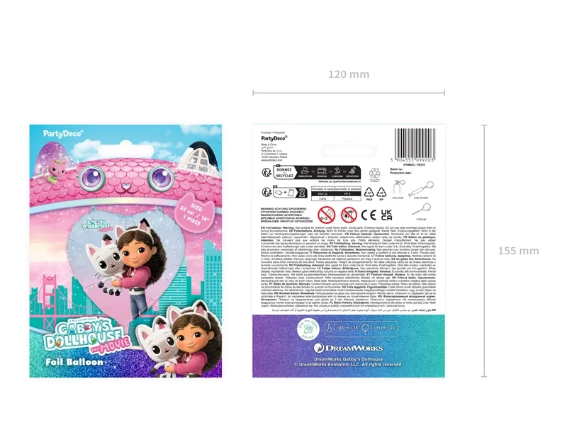 • Balon foliowy w kształcie serca, z dwustronnym nadrukiem z bohaterami Kociego Domku Gabi.