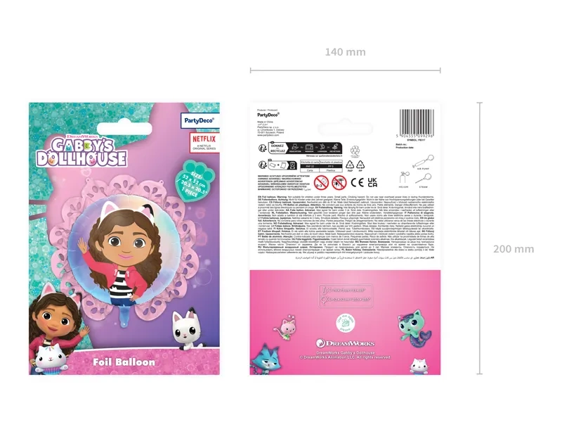Duży, okrągły balon foliowy z uroczym motywem bajki Koci Domek Gabi to wyjątkowa dekoracja na dziecięce urodziny i inne przyjęcia. Dzięki ozdobnej falbance balon prezentuje się jeszcze bardziej efektownie i z pewnością zachwyci małych fanów Gabi i jej kociaków.
