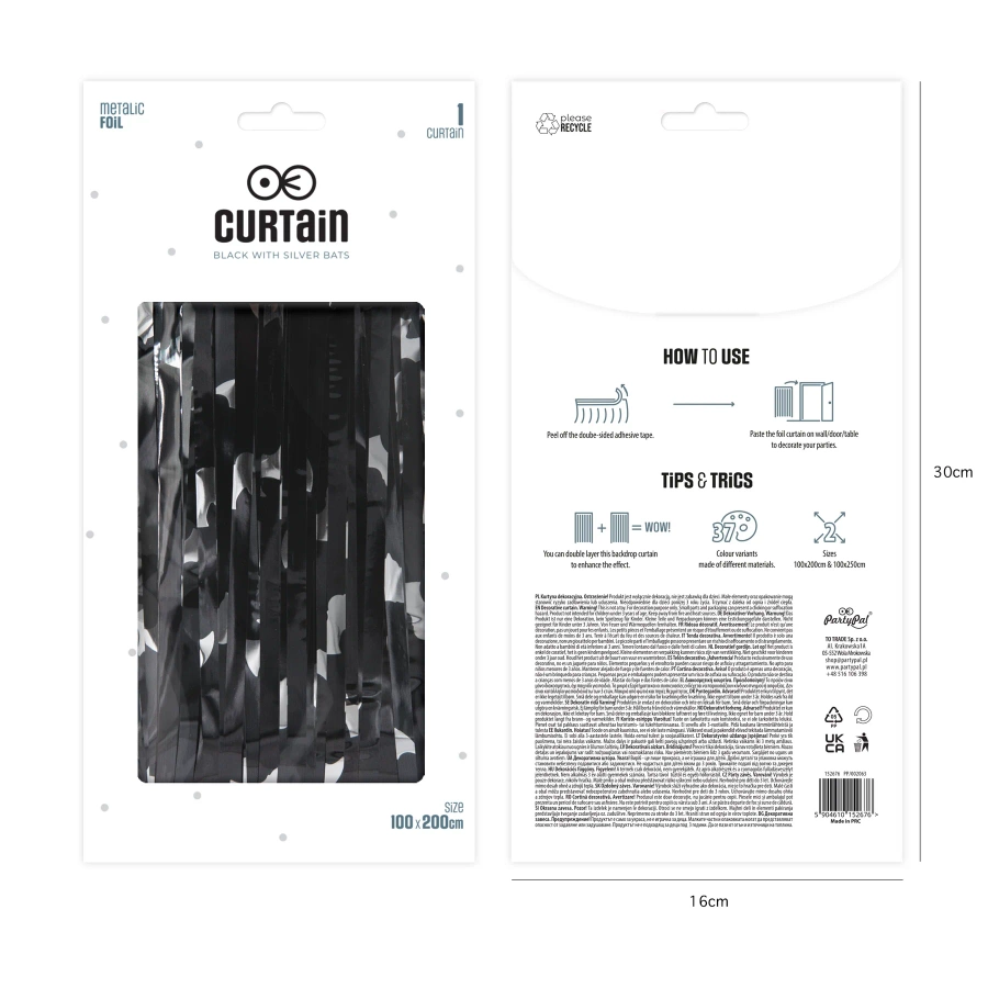 Dekoracyjna kurtyna party w nietoperze to prosty i efektowny sposób na urozmaicenie wystroju każdej imprezy. W srebrnym kolorze pięknie odbija światło, tworząc wyjątkowy klimat i dodając energii wnętrzu. Może być wykorzystana jako tło do zdjęć, element dekoracyjny ściany czy wejścia, a także jako scenografia na przyjęciach tematycznych.