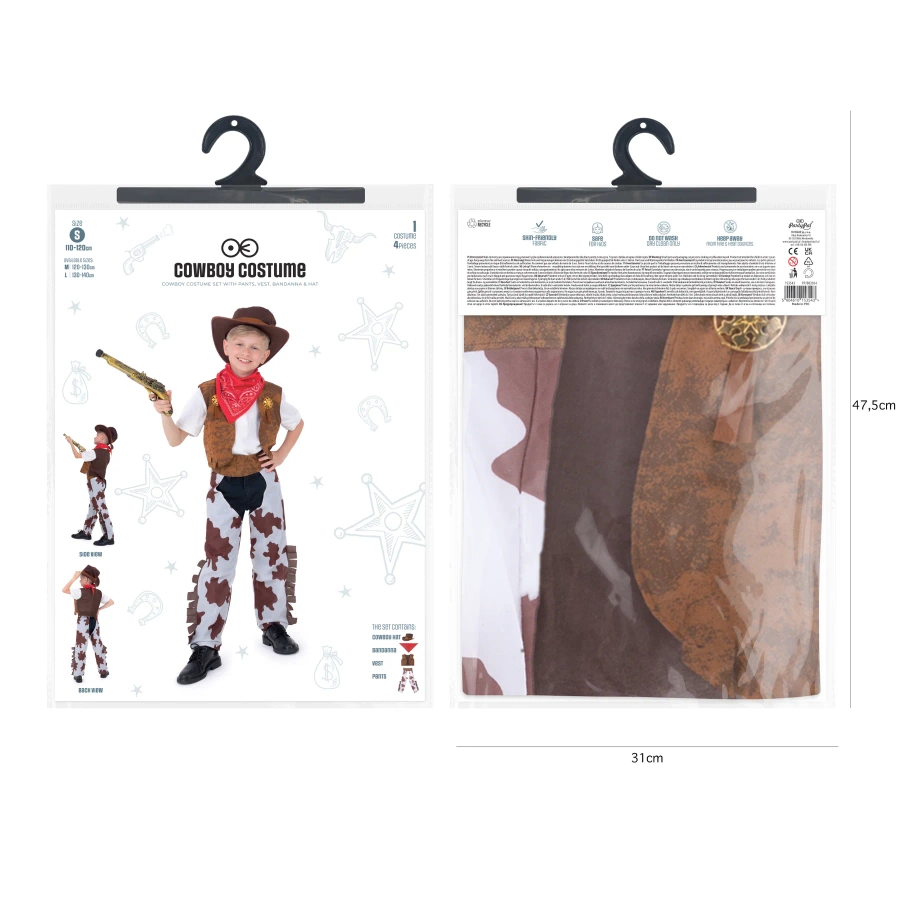 - Zestaw zawiera: kamizelką, nakładki na spodnie, bandamkę i kapelusz.