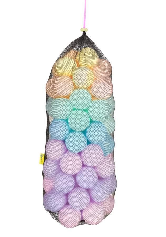 W zestawie znajdziecie piłeczki basenowe w pastelowych kolorach: żółty, różowy, łososiowy, błękitny, miętowy, fioletowy