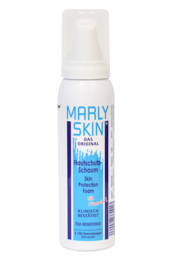 Marly Skin nie pozostawia tłustej warstwy i nie podrażnia oczu ani błon śluzowych. Nie ma wpływu na żywność. Ten środek ochrony skóry jest przeznaczony wyłącznie do użytku zewnętrznego i można go stosować na całe ciało.