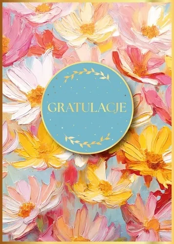 - Kartka okolicznościowa z piękną grafiką malowanych kwiatów i napisem GRATULACJE.