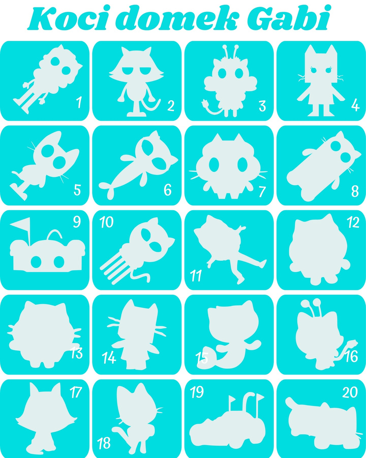 Szablony do tatuaży brokatowych tematyczne 20 szt. Koci Domek Gabi