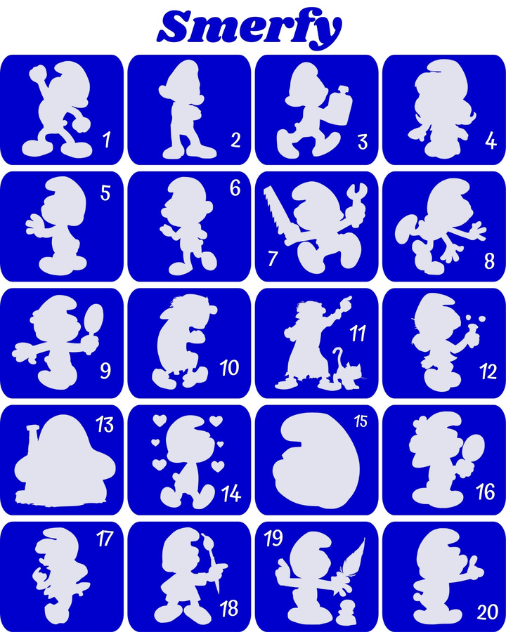 Szablony do tatuaży brokatowych tematyczne 20 szt. Smerfy
